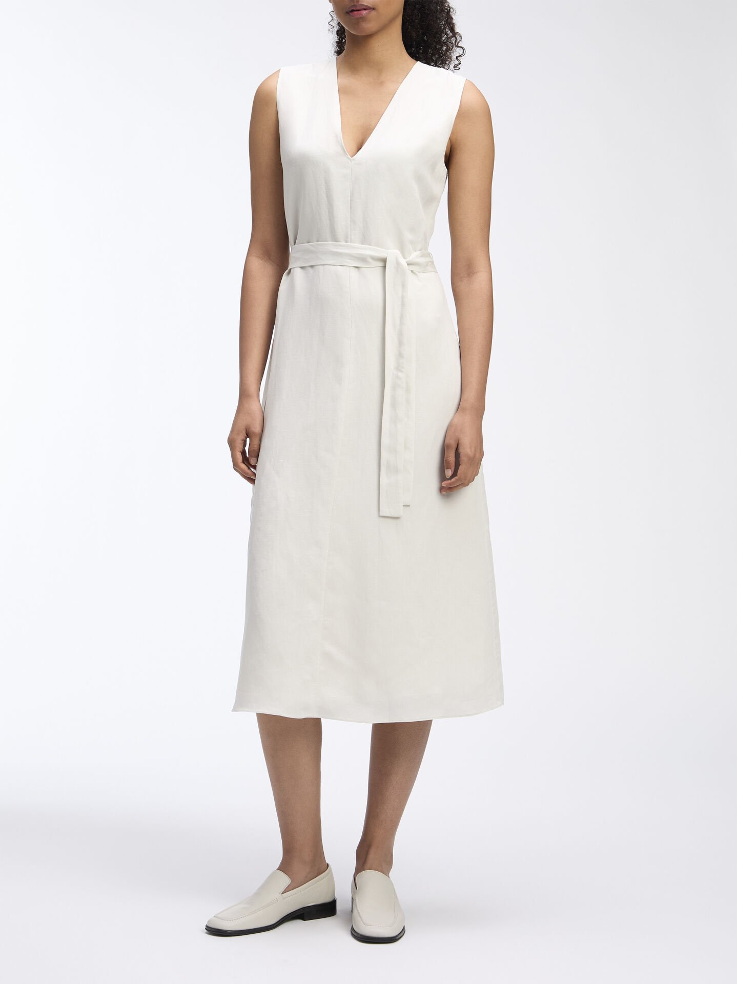 TENCEL LINEN NS V NECK DRESS